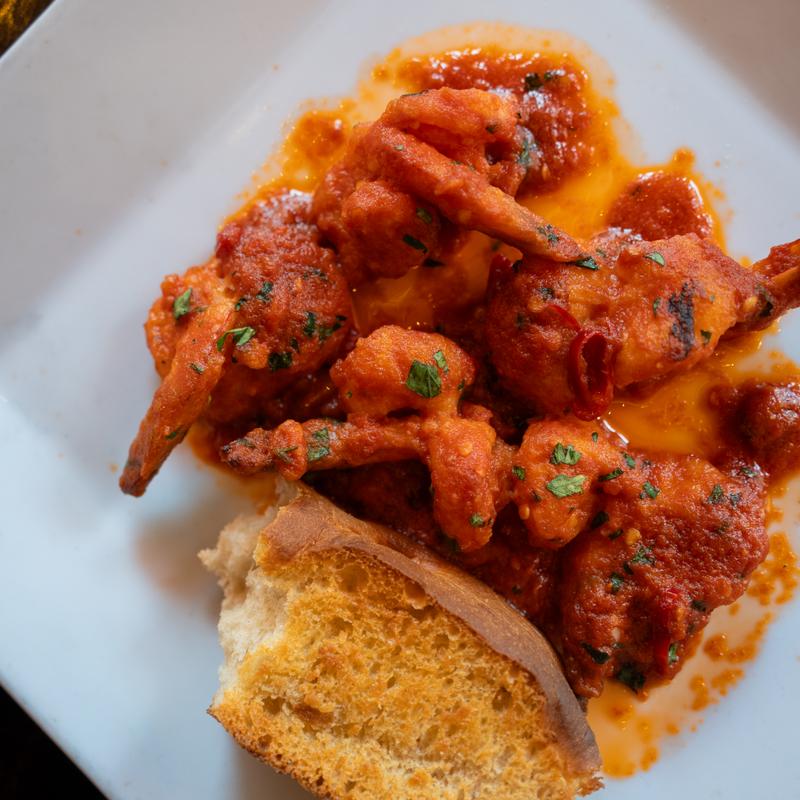 Small Platter $160.00 | Large Platter $240.00 • Pan-seared Gulf shrimp, Calabrian chili, cherry peppers, fiery tomato sauce.